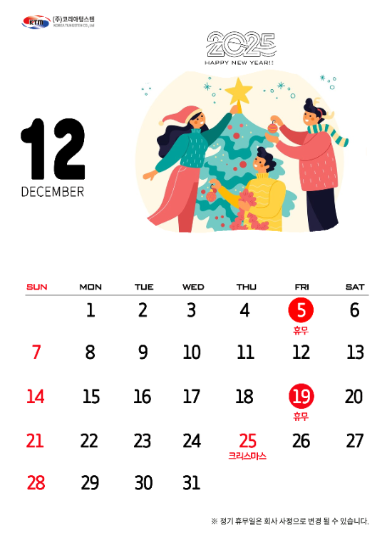 12월 코리아텅스텐 휴무일 안내 드립니다.